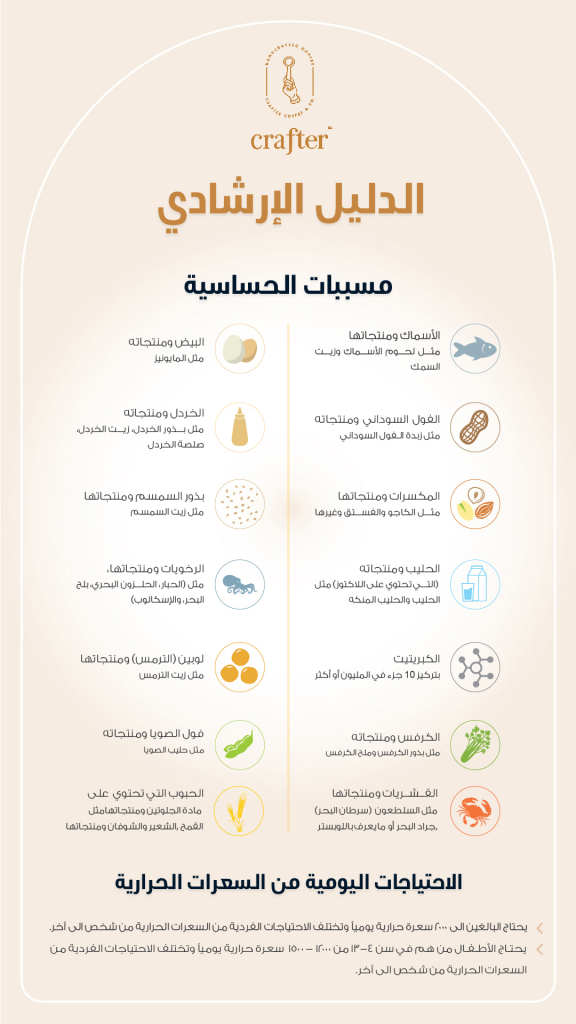 يرجى إبلاغ الكاشير إذا كان لديك أحد أسباب الحساسية